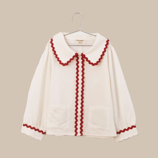 BASIC BLOUSE WITH RED RIBBON/WHITE