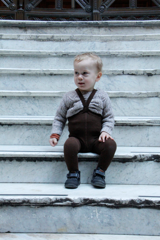 Retro Ribbed Suspender Footless_Acorn Brown × Maple Leaf