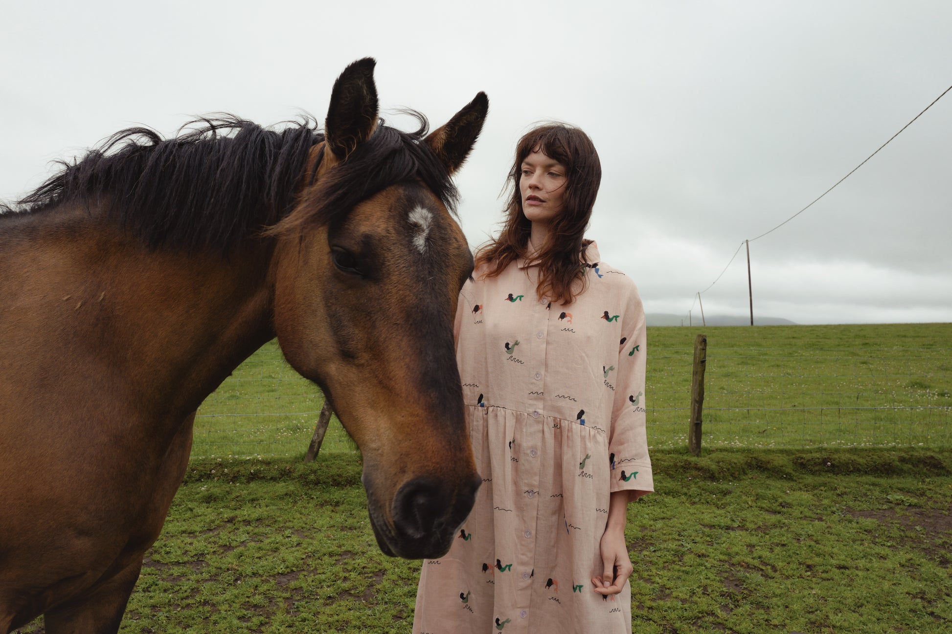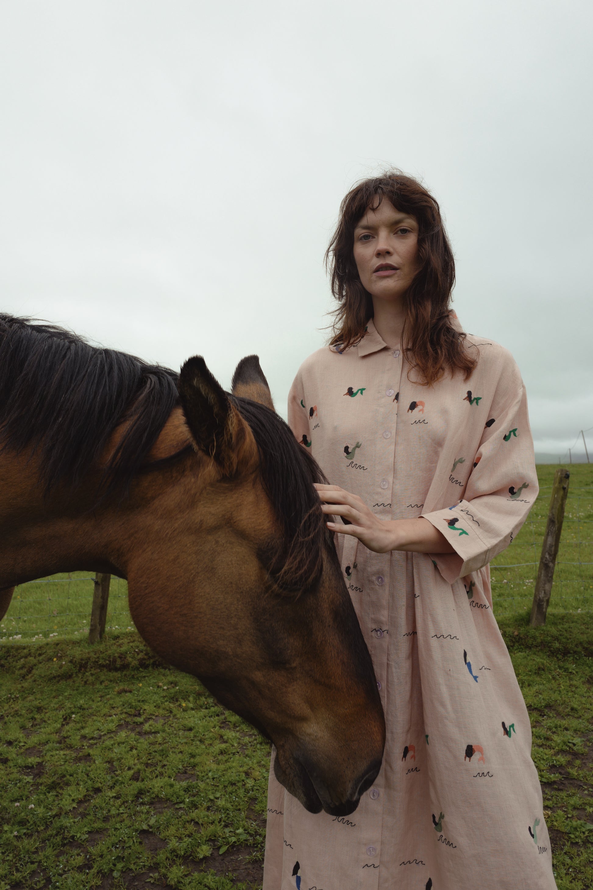 大人用のマーメイド刺繍入り リネンコットンワンピース