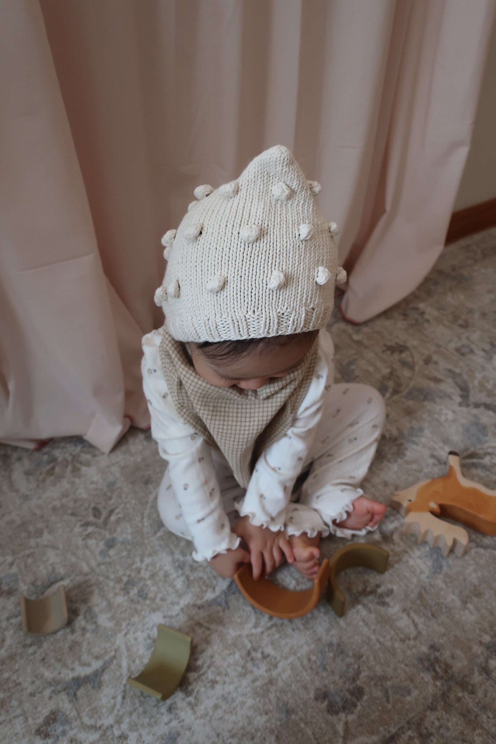 ベビー用ボンネットはまだ髪が生えそろわないベビーコーデのマストアイテム.