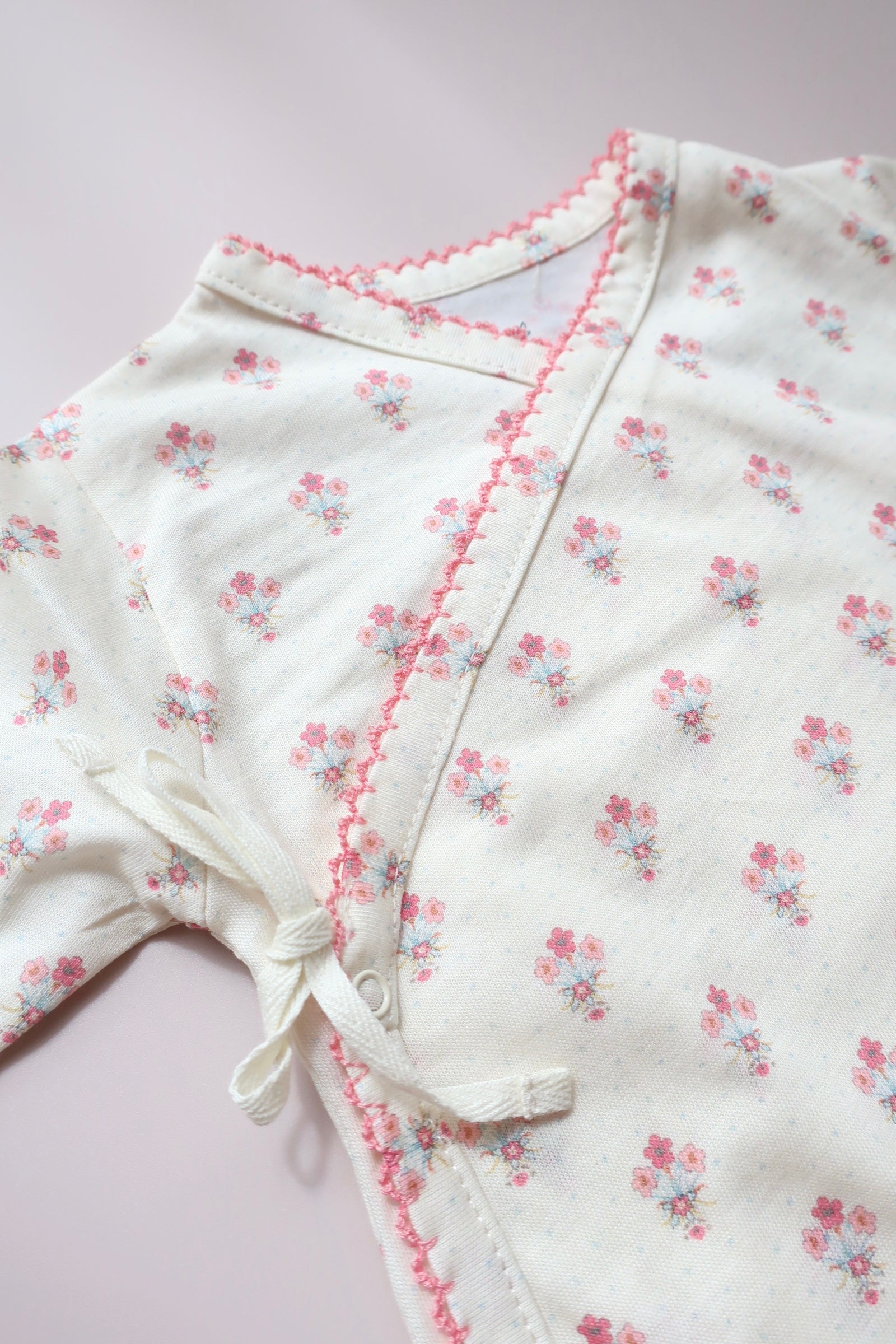愛らしいコットンジャージーのベーシックラインに、優しいブーケプリントを施しました。お昼寝中も、おうちでのんびり過ごす時も、赤ちゃんはこの驚くほど軽くて柔らかなモデルを楽々、おしゃれに着こなせます。