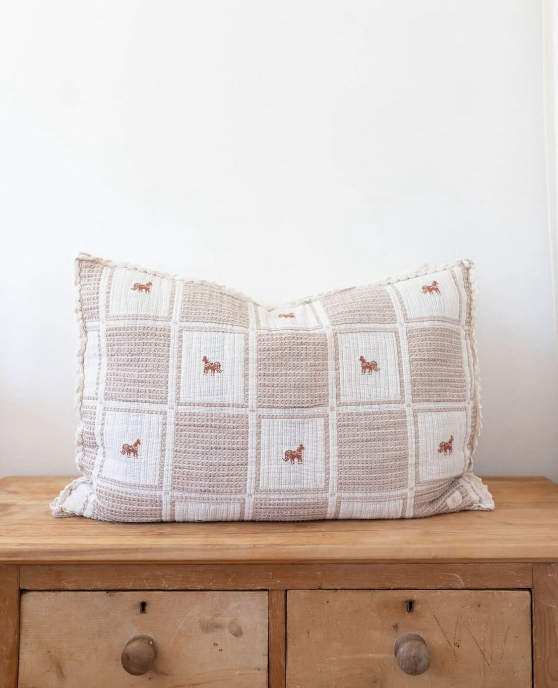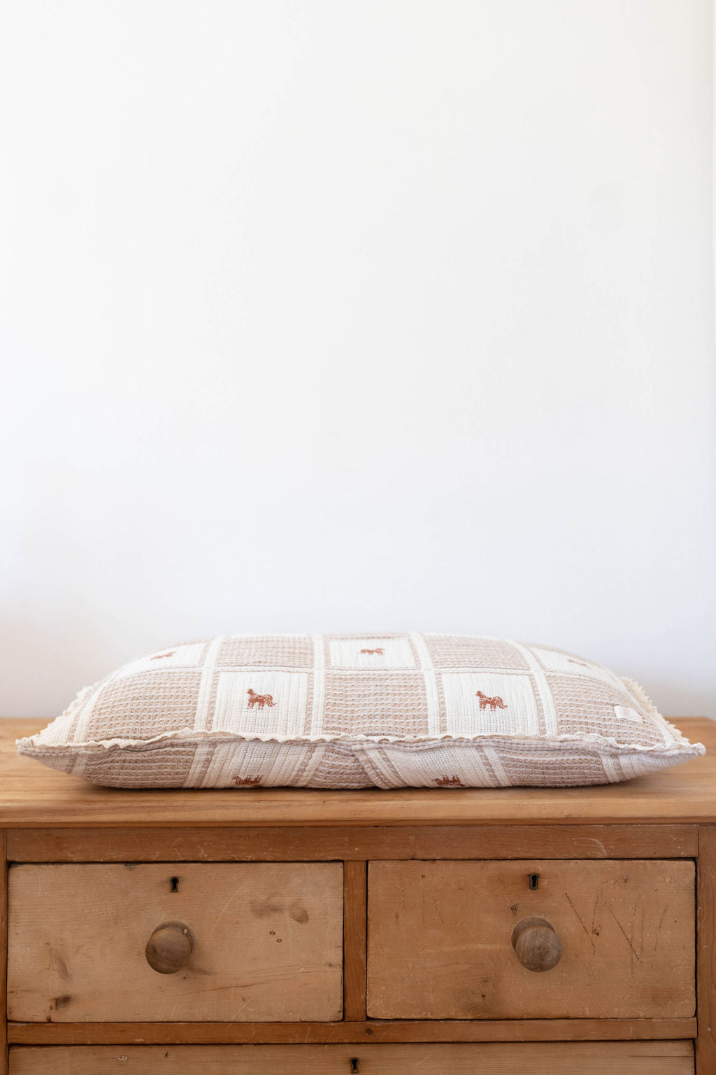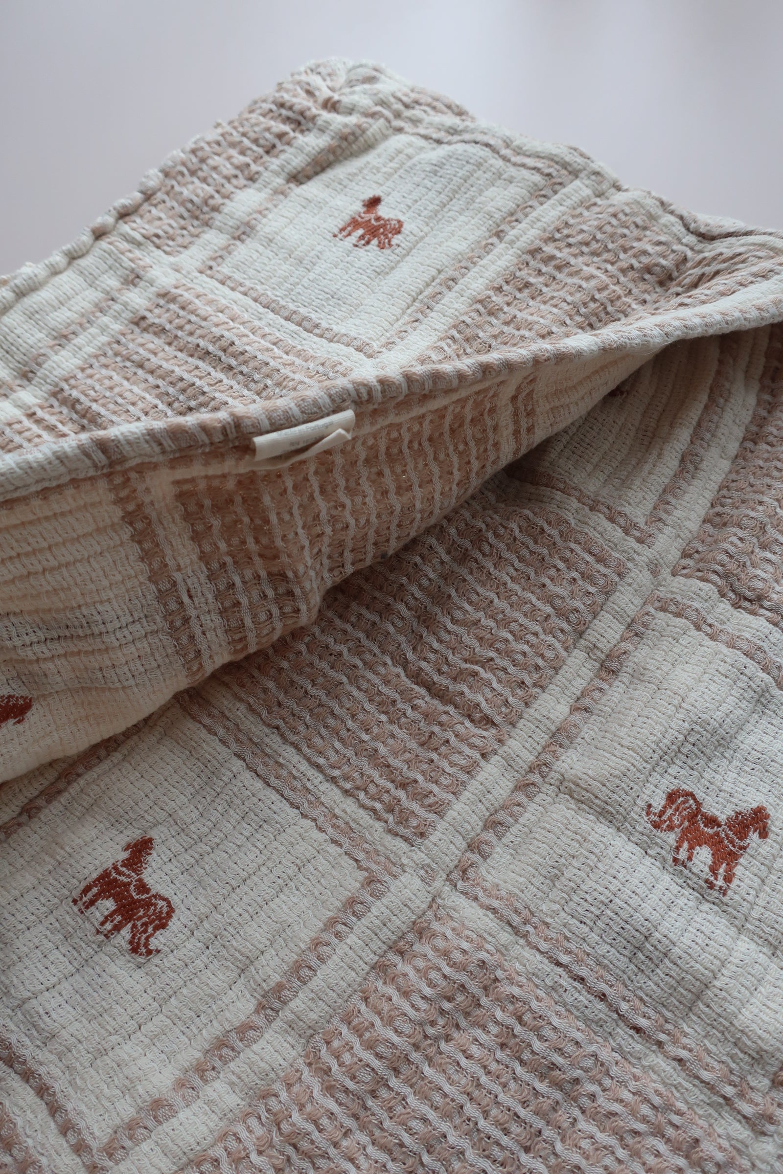 ブランケットとお揃いで使える「Pony」のパッチワークピローケース。
