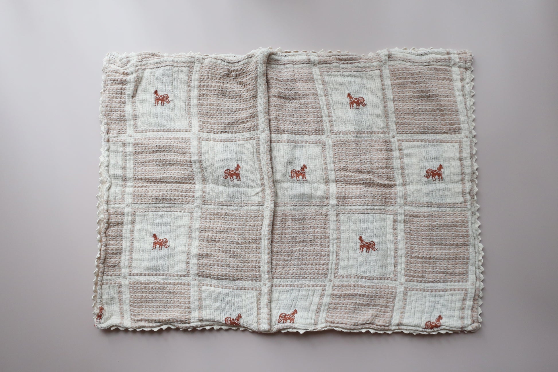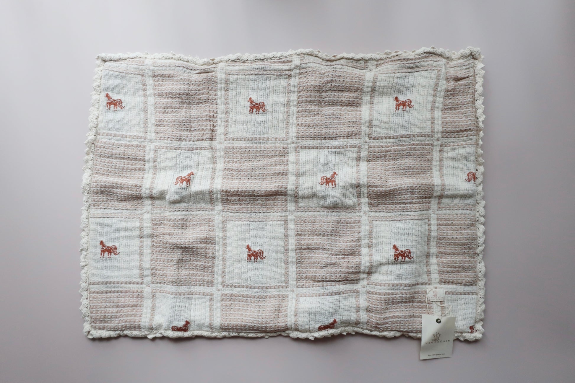 細密刺繍のポニーとクロシェ編みの縁飾り