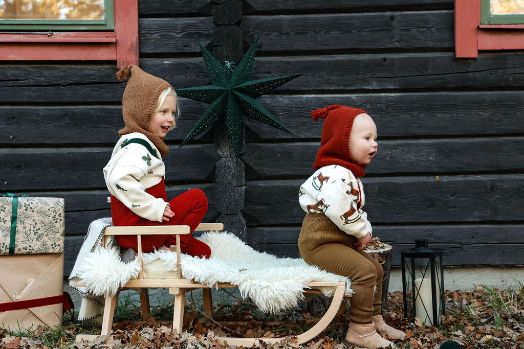 スウェーデン発キッズタイツブランド「SILLY Silas」の定番肩紐つきレギンスと大人気ベビーウェアブランド「Organic Zoo」のコラボしたクリスマス限定コレクション。