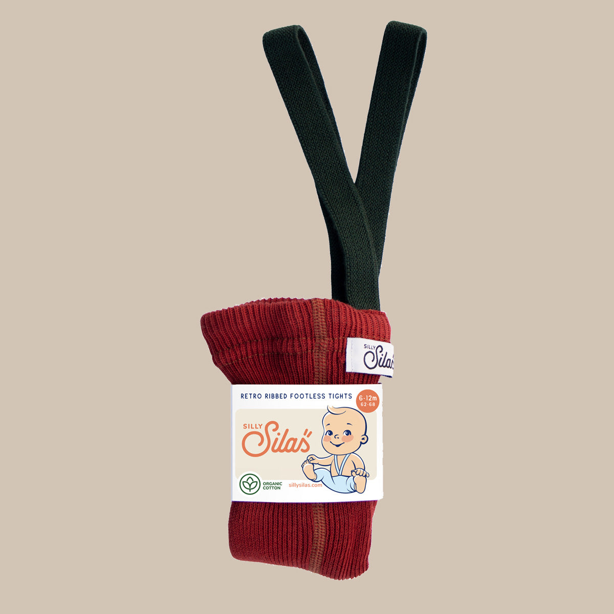 Retro Ribbed Suspender Footless_Maple Leaf x Dark Forest Green